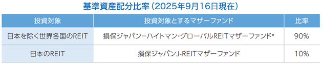 目指します。日本を除く世界各国のREITに90%程度、日本のREITに10%程度資産を配分します。