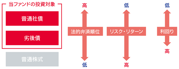 ※法的弁済順位とは、発行体が破綻等となった場合において、債権者等に対する残余財産の弁済順位をいい、弁済順位の高いものから弁済されます。